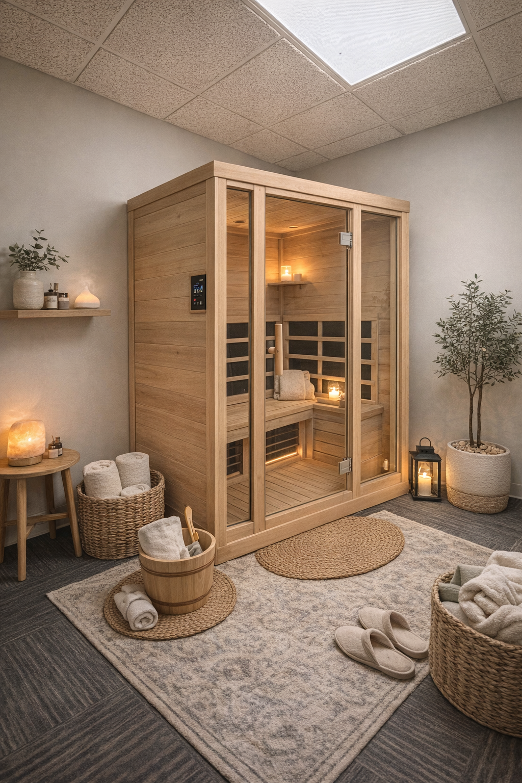 Relaxation lounge + Individual therapy + Infrared sauna or Red light therapy